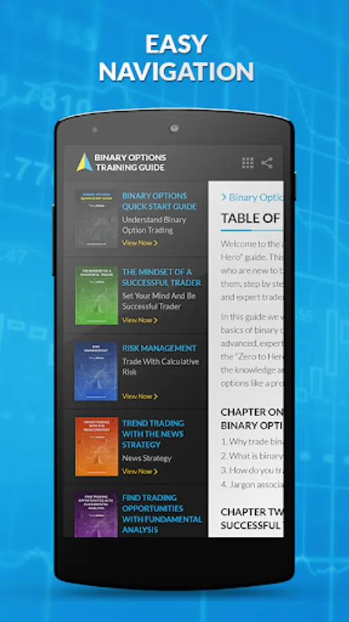 The binary option ebook guides are designed to help new binary options traders get acquainted with the terms and basic mechanics of order placement and better how the markets works. They are then led to the next step where they will cover the building blocks of technical and fundamental market analysis. Moving forward, we will guide our traders to put all the concepts together into an actionable plan that will work enhance their binary options trading style.