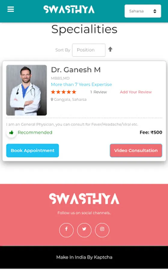 Kaptcha Health, India’s no.1 online doctor consultation app.