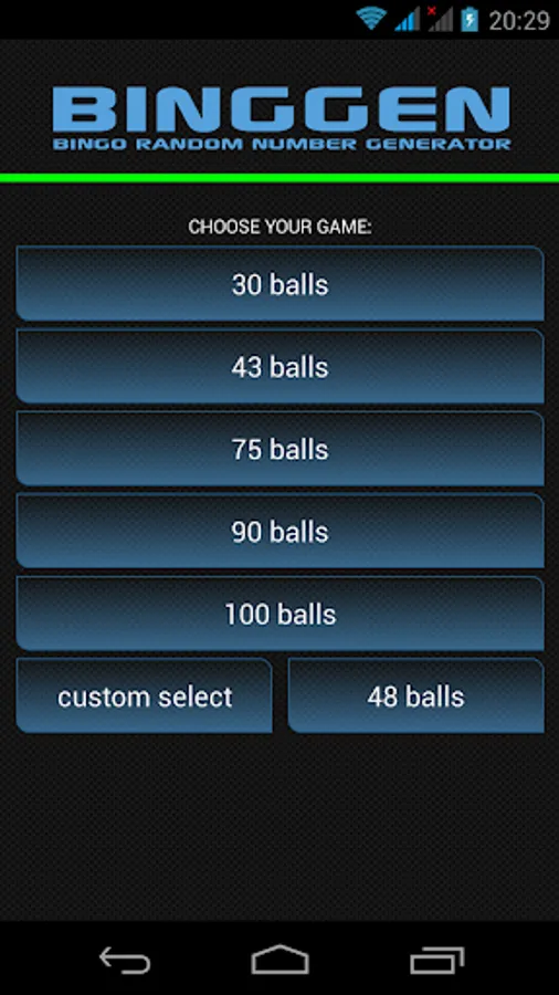 Application that generates random numbers for all Bingo game variations. Application can also be used in other situation where random number between 1 and maximum of 120 is needed.