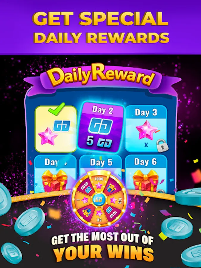 - Daily bonus: Every day you spin a wheel, and you'll get amazing bingo rewards for free.