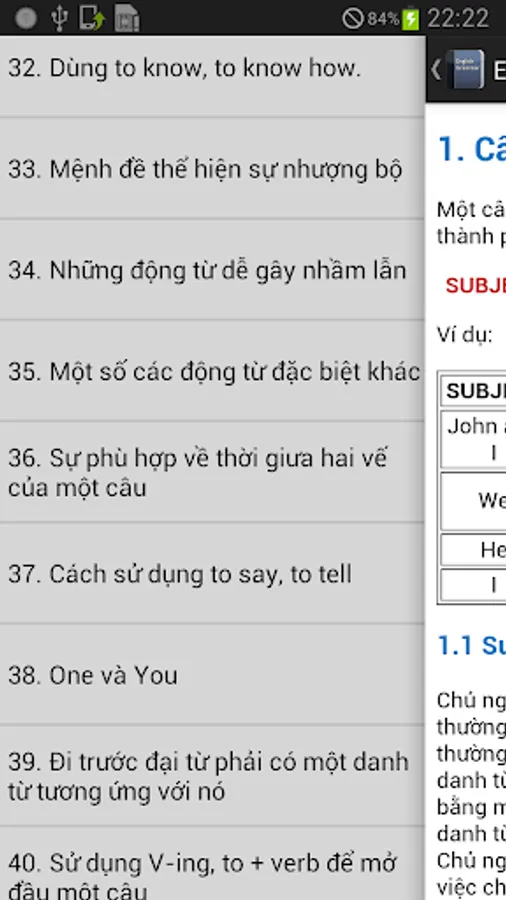 Application compact, free system basic English grammar, help you learn, look up an easy way.