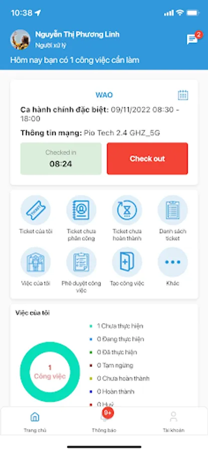 - ePoints Workspace is a cloud-based workspace, containing all online work tools such as: attendance, order creation, scheduling, warranty maintenance, task management - ticket, customer management, potential classification, internal chat, chatub, document management ... to support users to work independently / in groups or connect with customers quickly and easily.
