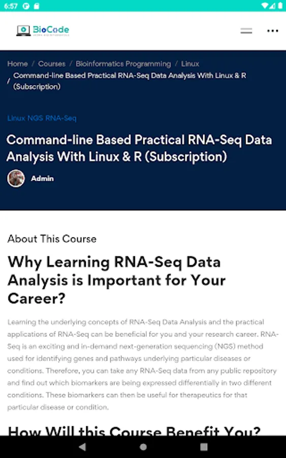 BioCode provides easy to learn Bioinformatics course that you can enroll without any prior experience or knowledge of Bioinformatics, computer languages such as Python, R or BASH (Linux).