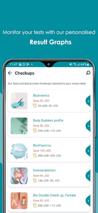 - Enhancements on the test results menu, historical result comparison chart in addition to medical information about tests.