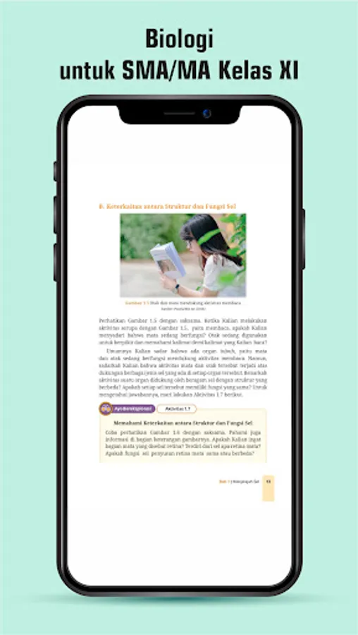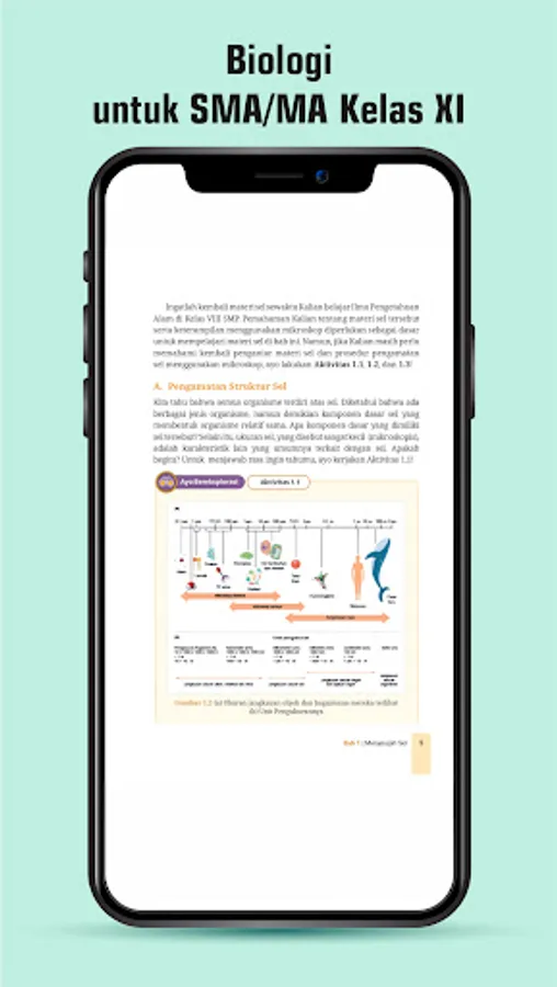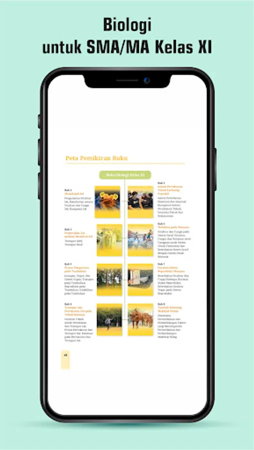 Terdapat delapan bab materi Biologi yang disusun berdasarkan panduan penerapan dan pengembangan Kurikulum Merdeka. Penerapan ciri khas kurikulum Merdeka terlihat di setiap bab, salah satunya diawali dengan penyajian permasalahan konteks kehidupan sehari-hari yang dipandu melalui pertanyaan pemantik. Peserta didik diajak untuk lebih mengenal dan mendalami fenomena alam terkait dirinya dan lingkungan sekitarnya. Pemunculan fenomena yang dekat dengan kehidupan diharapkan dapat memantik peserta didik untuk belajar lebih bermakna.