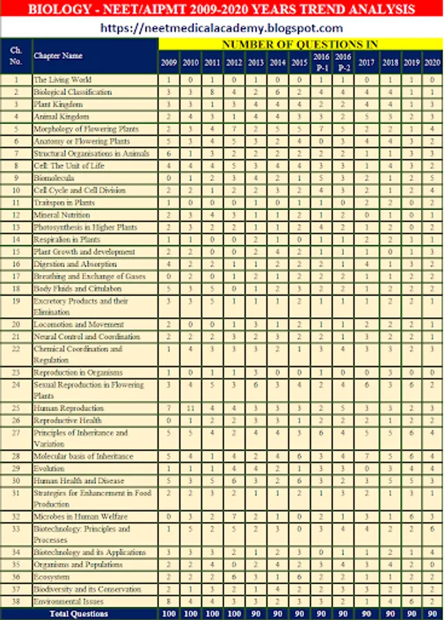 *New Update* 33 years biology chapter wise upto 2020 updated. NEET Trend analysis upto 2020 updated.