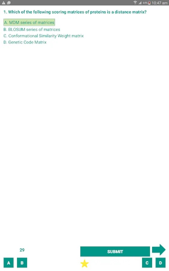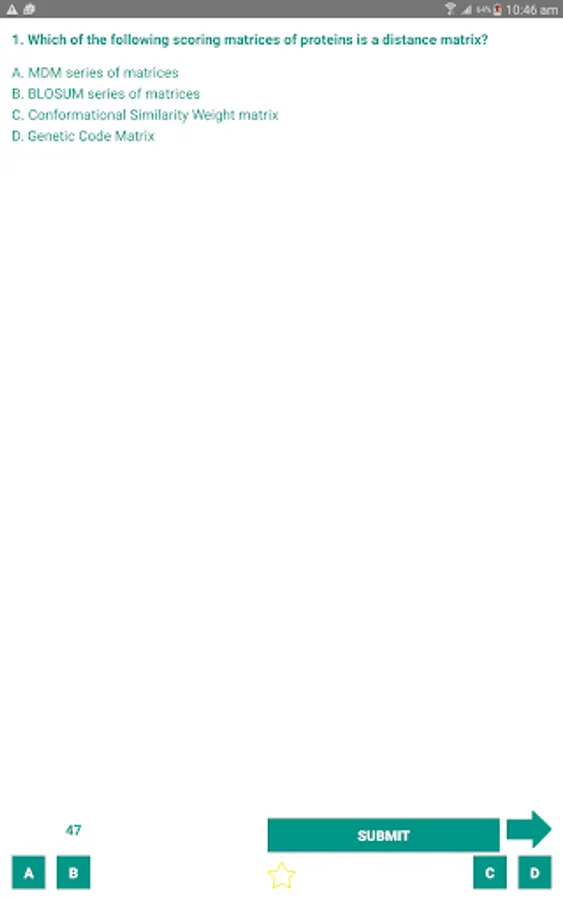 Bioinformatics has various applications in research in medicine, biotechnology, agriculture etc. Test your knowledge of the subject with a short quiz. Choose the best answer from the four options given. When you've finished answering submit the button to get the 'Score'. Percentage score will be displayed along with right answers.