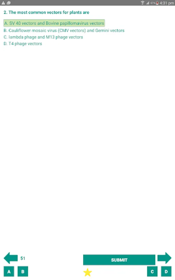 This quiz is designed to assess your basic knowledge in 'Biotechnology'. Choose the best answer from the four options given.When you've finished answering submit the button to get the 'Score'. Percentage score will be displayed along with right answers.