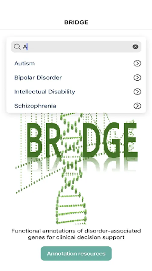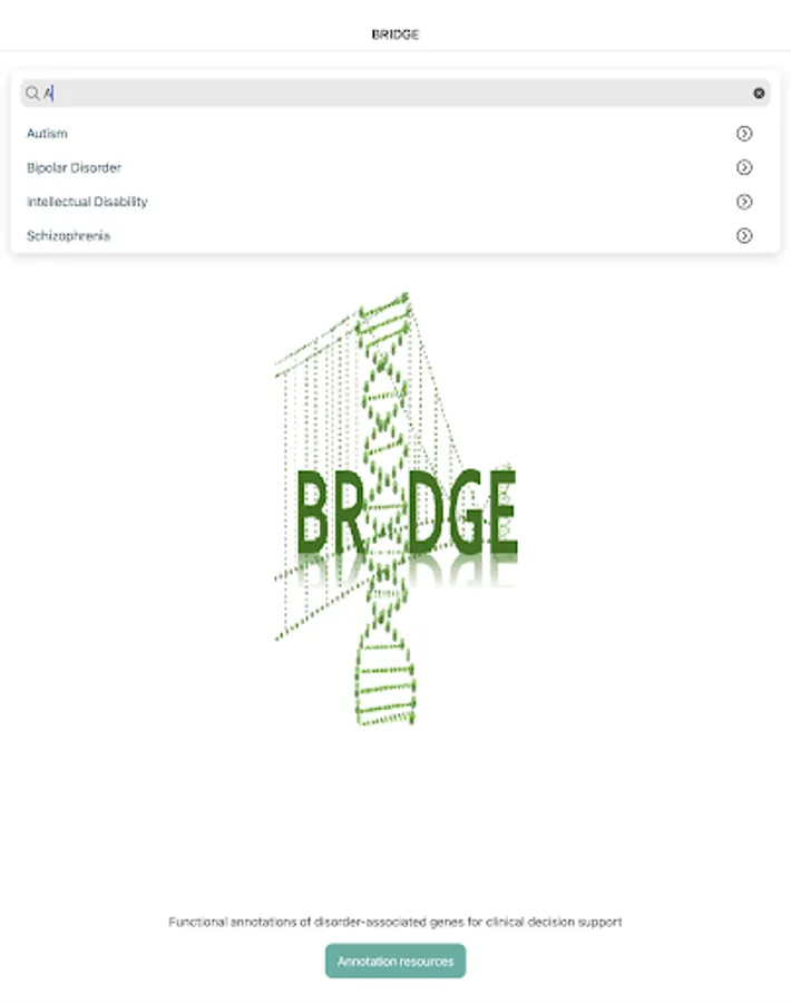 Gene Bridge app helps users to explore Genes related to certain Diseases. BRIDGE stands for Bringing Rapid Insight from Disease Gene Exploration