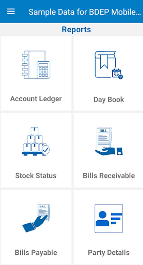 b) DayBook, Account Ledger, Bills Receivable/Payable, Stock Status & Party Details can be viewed.