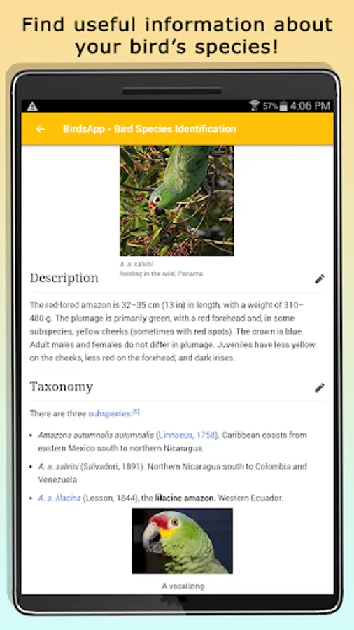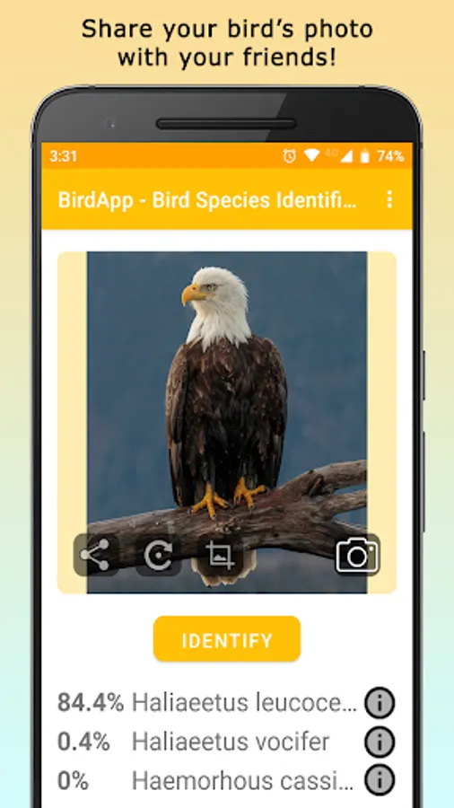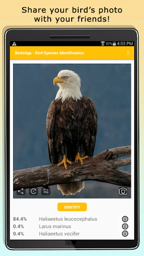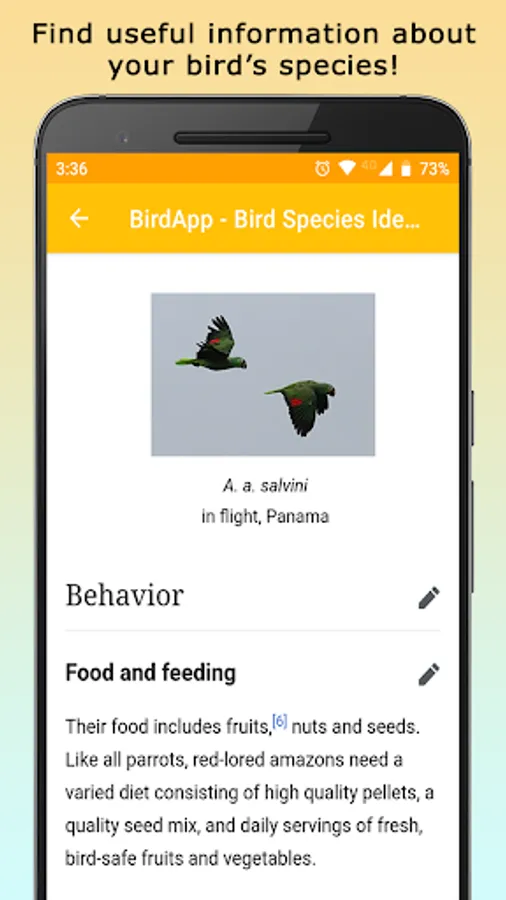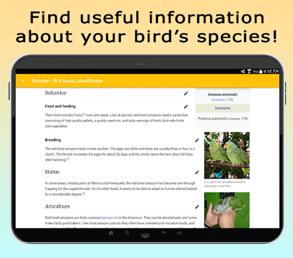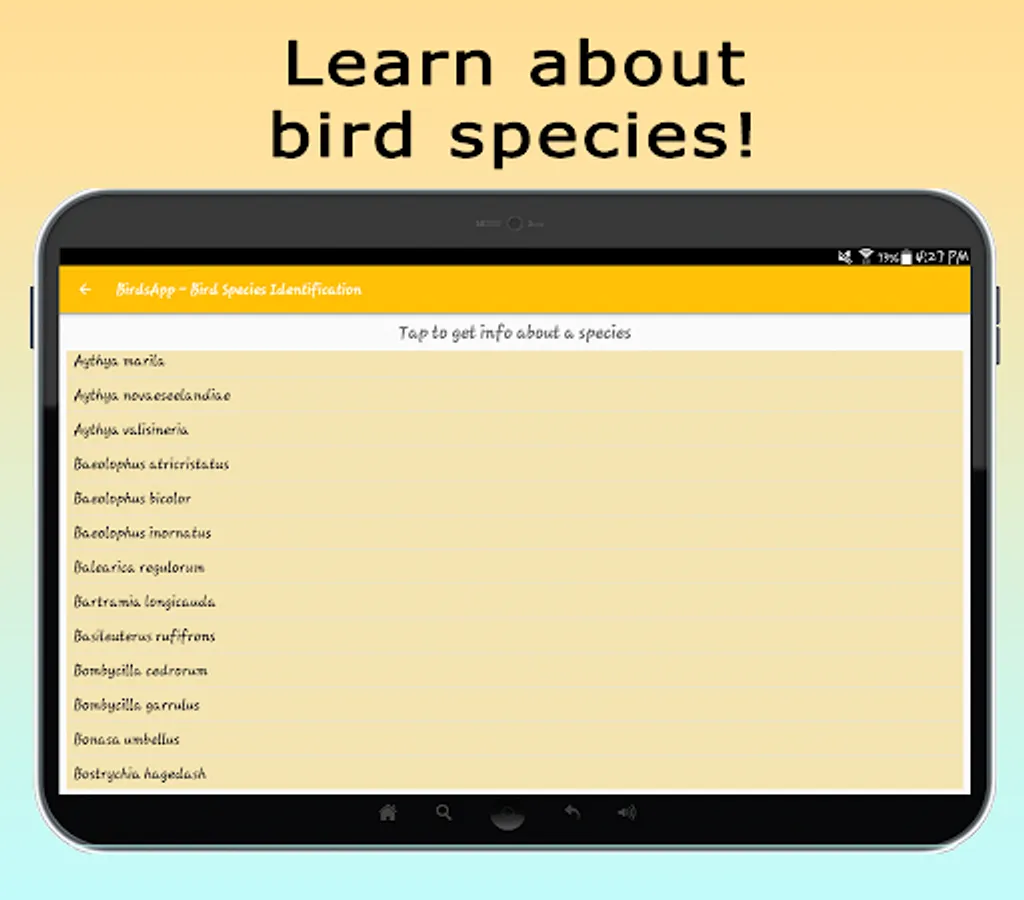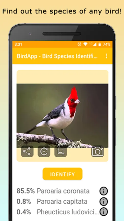 With the “BirdsID Scanner - Bird Species Identification” you can scan any bird to identify its species. Our scanner analyzes bird features to classify them and detect bird species. Discover the species of your birds. Find useful information about almost a thousand bird species within our BirdsApp Scanner. Identify the species of your birds and learn about them.