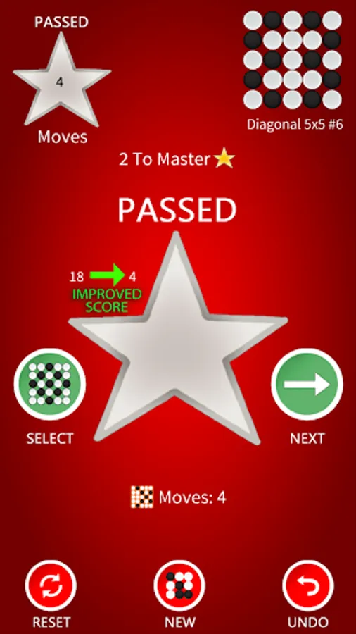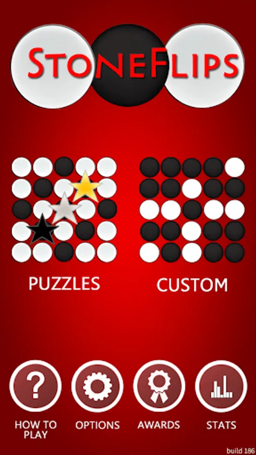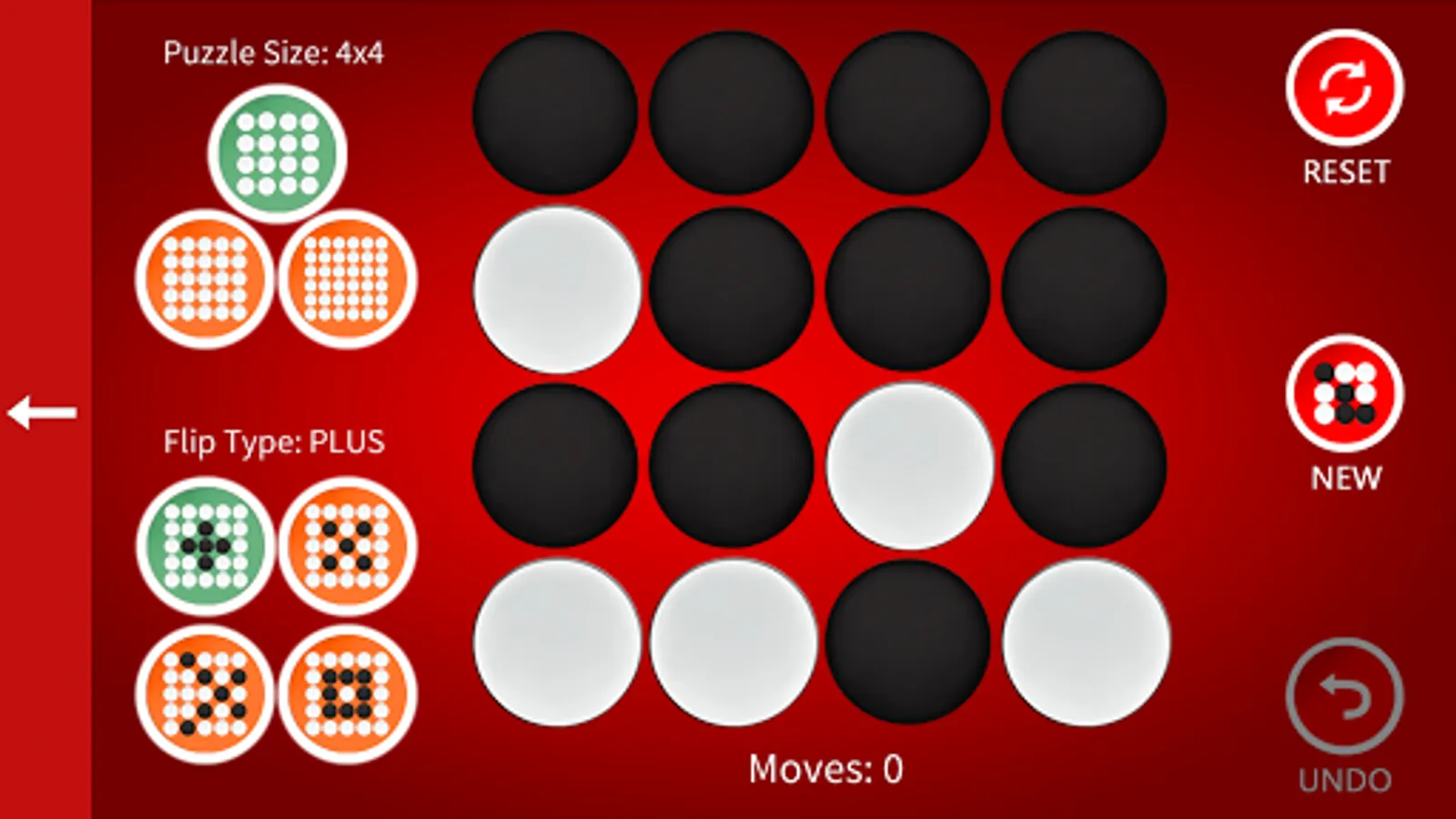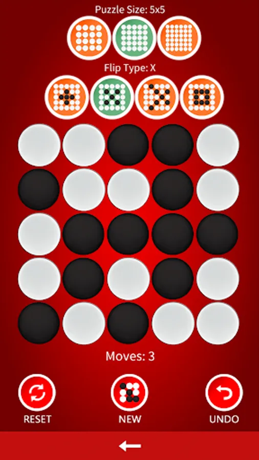 StoneFlips is similar to a lights out puzzle game, where you try to get all of the stones to be the same color.