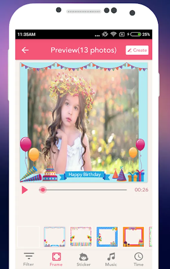 Birthday Slideshow with Music helps to wishing Birthday of your friends, family members and makes them happy. what if you wish with video created from photos,birthday songs, birthday stickers, birthday frames .