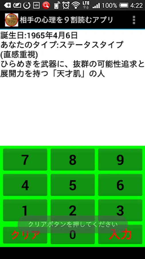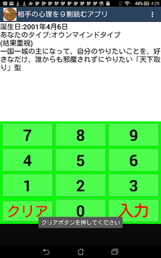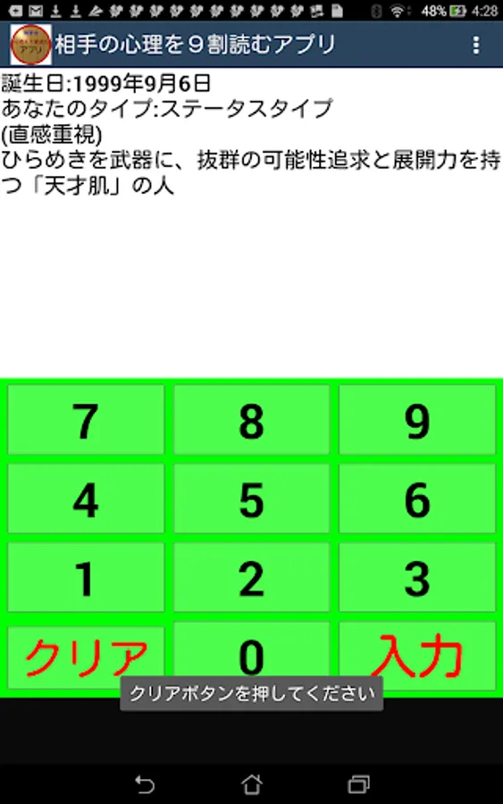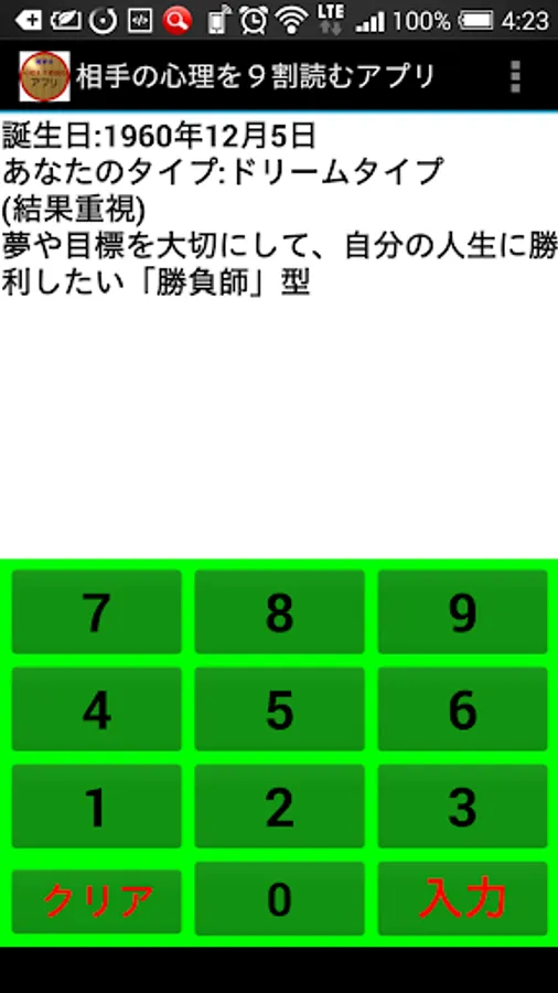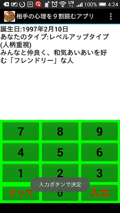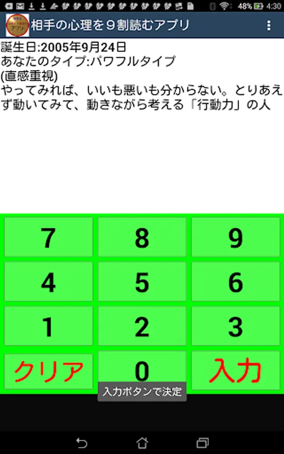 誕生日を入力して出る相手のタイプは