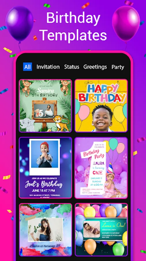 Invitation video making app allows to design birthday invitation card with song, text animation, videos. Kids birthday party are very special mainly children first birth anniversary celebration. Create a 1st birthday inviation video with theme to match with bday party theme. Video invitation maker for birthday party for all year, baby boy, girl. B'day movie making app to create movie with photos of beautiful moment and add your favourite song to play in HBD party.