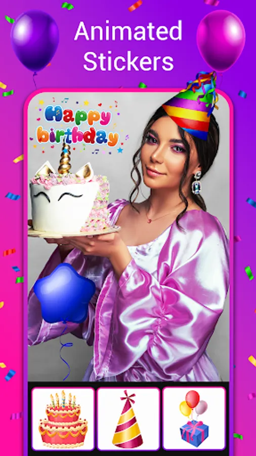 1. Easy to create birthday video. Select a birth day video template and edit text, photo, images and stickers.