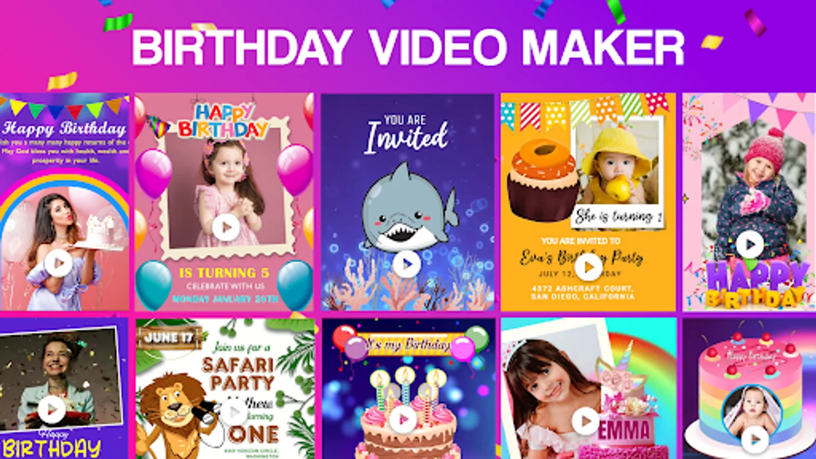 Happy birthday invitation card maker is very common, make video with music and video background.