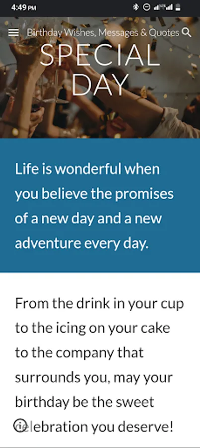 Birthday Wishes, Messages and Quotes App is an app that has hundreds of messages and birthday quotes for Friend, Sister, Cousin, Mother, Father, Family and More…