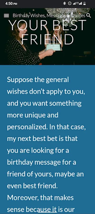 With the Birthday Wishes, Messages & Quotes App, You will have several options of birthday wishes, Messages and quotes to wish a happy birthday to a friend, boyfriend, husband, wife, mother, father, sister, cousin and other special people in your life.