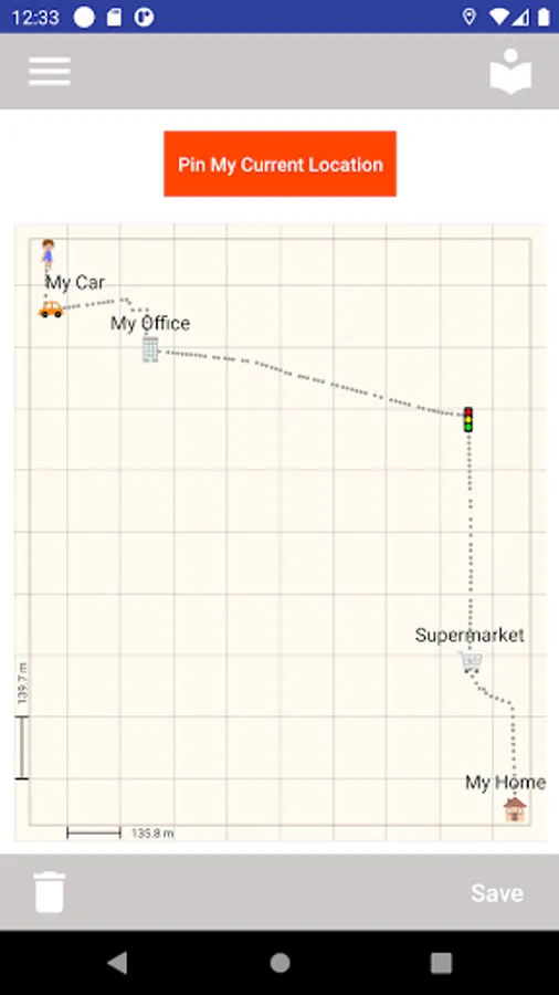 What the app does is that it tracks you and draws your route constantly. You can drop a pin on any location that you are interested in. You can give the pin a name and assign it an icon using a variety of image options. In this way, you will have a clear view of the region you are interested in. You can follow the route to take you back to the departing point. You can save the created map. The next time you can open it and follow the route to take you to the location pins.