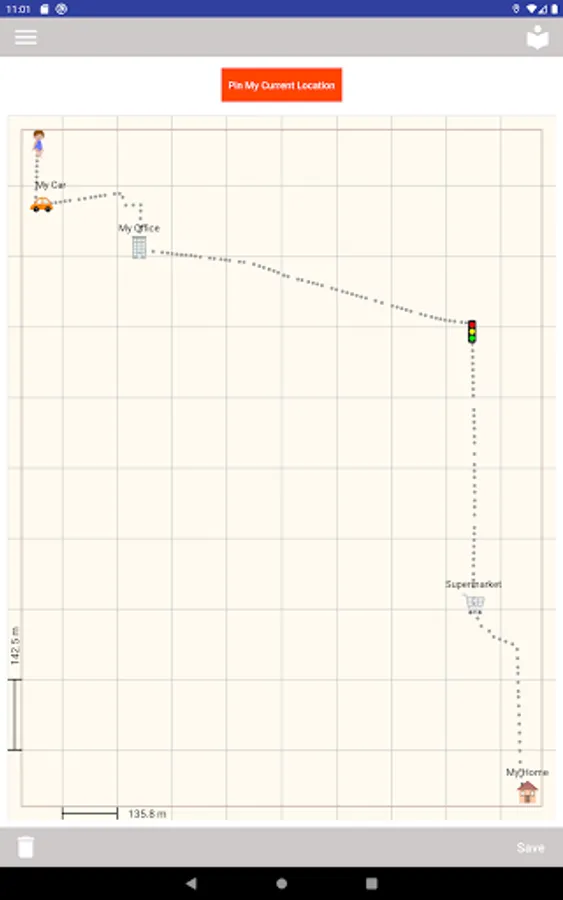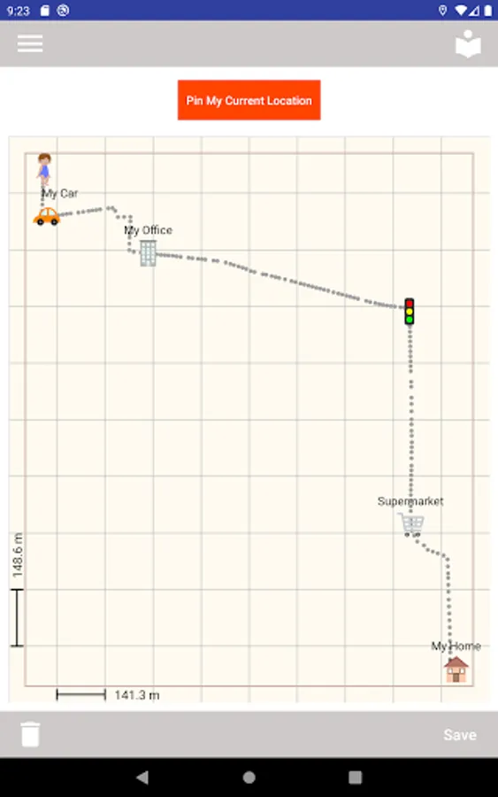 This app helps you create a custom map of your neighborhood and navigate without the need for internet connection or any pre-downloaded map. This app is particularly useful for anybody who has a poor sense of direction, or who can not read maps with so many uninteresting street names and directions. Let's assume you have just moved into a new home and you don't want to get lost when traveling around. This app helps you find your way back home easily. Another practical use of this app is to find where you have parked your car, find your favorite restaurant, store, hotel, or a particular building in a neighborhood.