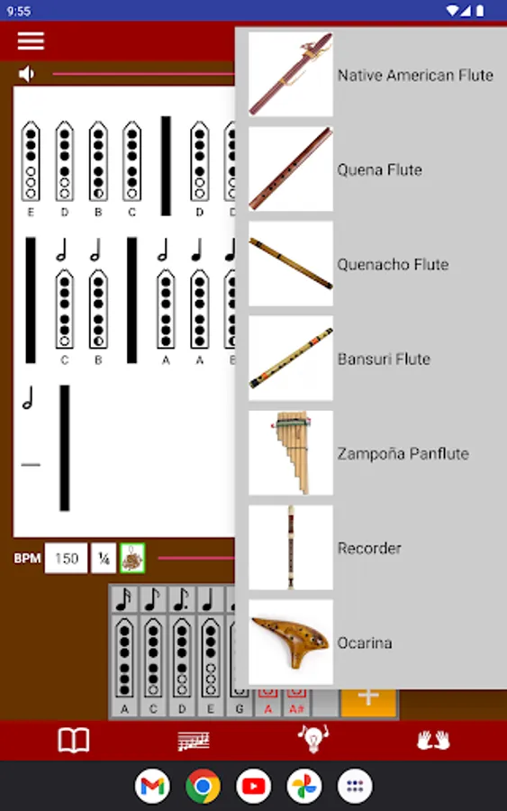 An interesting feature of the app is that you can easily convert the fingering of your written song from one flute to another flute as much as it is convertible. In order to do that, write your song for one flute and simply open it for another flute.