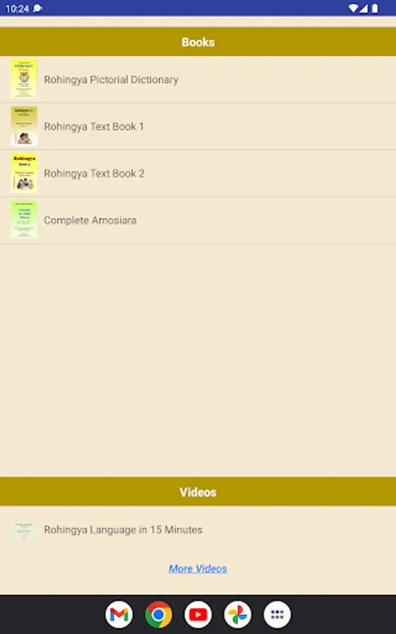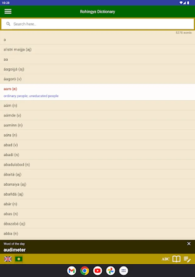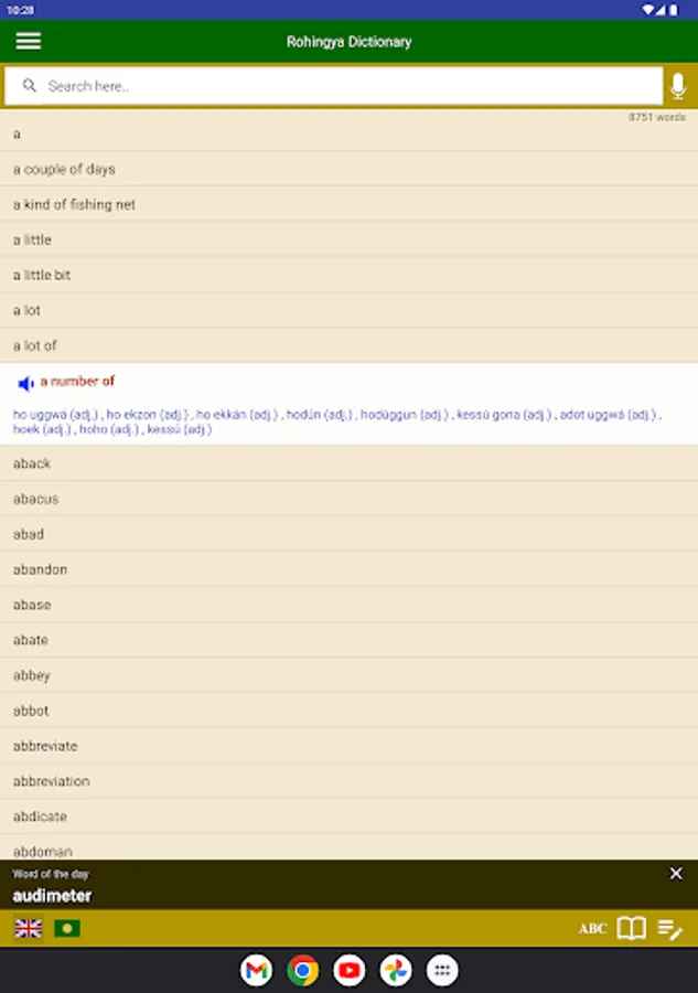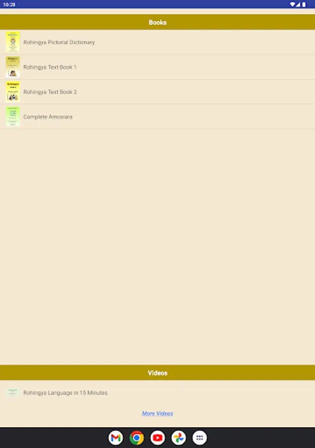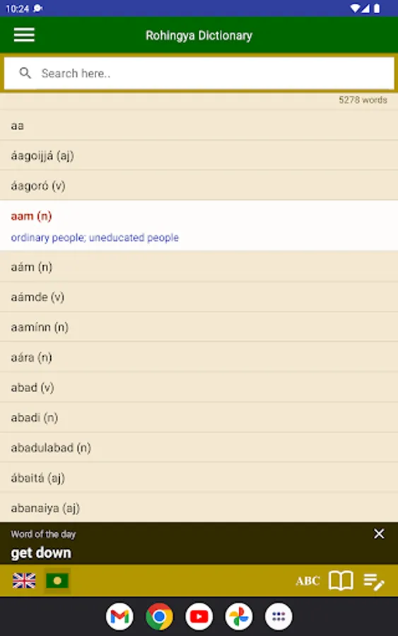 Also the app shows a daily word to help you memorise one English word every day. Moreover, you can learn the Rohingyalish alphabets using voice tables, various textbooks and videos.