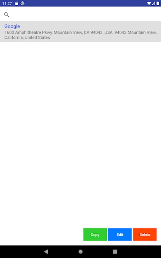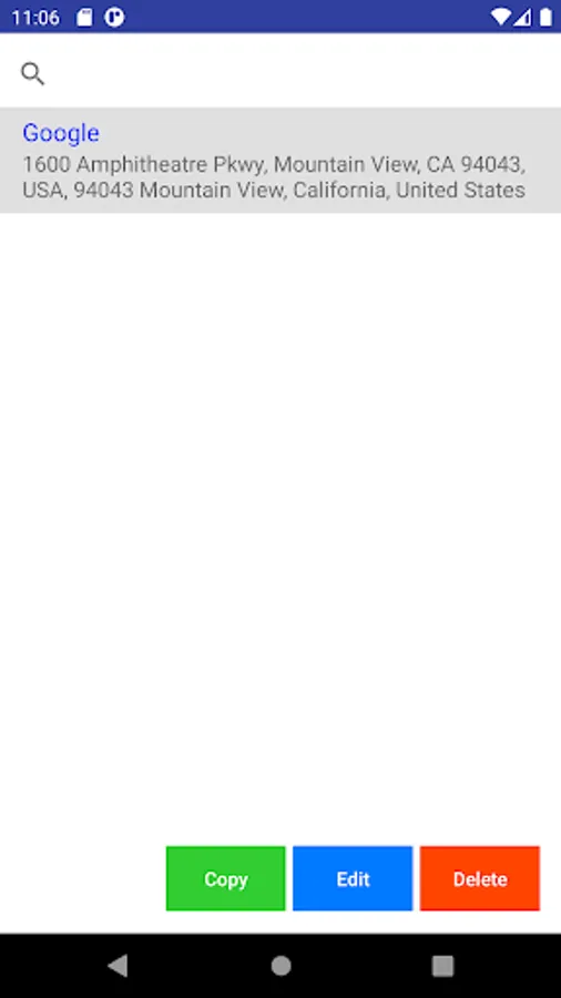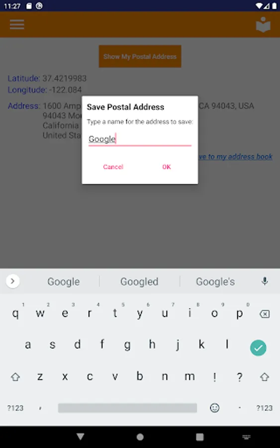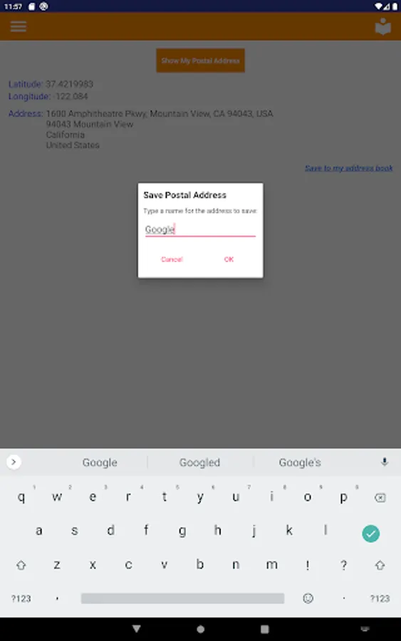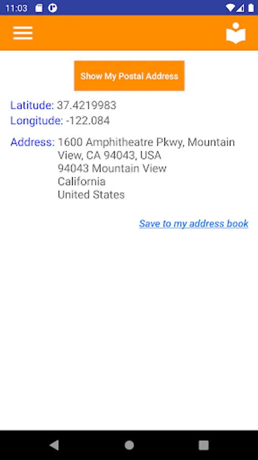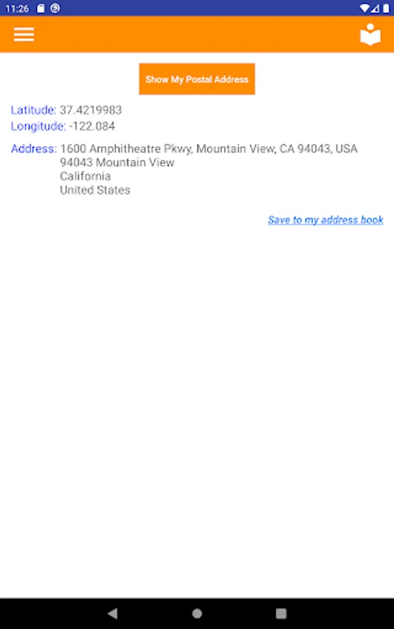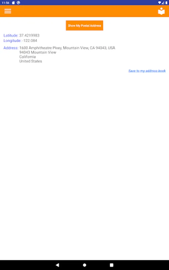 Using this app you can find your postal address based on your current location. You can also save it in your address book for future access. In order to delete, edit, or copy an address to clipboard, tap on the desired row in your address book and select the appropriate action.