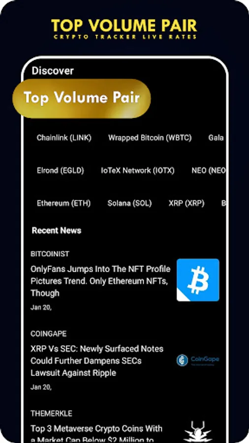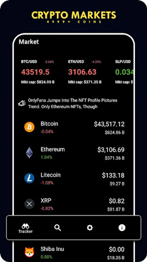 Crypto Tracker App is useful to constant monitor Cryptocurrency Investments with Real Time Data, Real Time Crypto Prices. Crypto Tracker App allows you to track entire cryptocurrency portfolio in single app with latest crypto news and alerts. Track Bitcoin(BTC),Ethereum(ETH) ,SHIB and many more cryptocurrency price and news to stay updated.