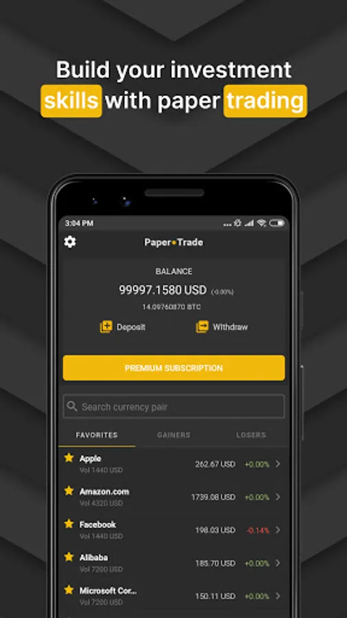 PREMIUM SUBSCRIPTION: Want more pairs than BTC/USD and have access to stock trading? Get full access to more than 100 cryptocurrencies! Develop your trading skills with BTC Bitcoin Paper.Trade Premium subscription. Try it for free with a 7-day trial. Just $4.99/month after trial ends.
