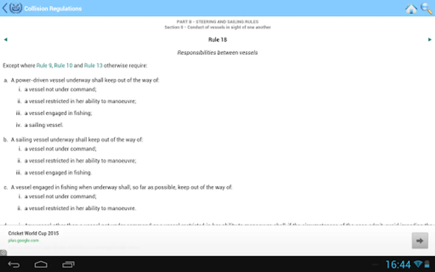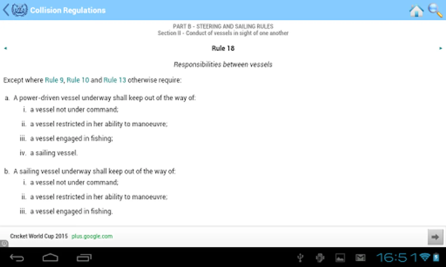 The International Regulations for Preventing Collisions at Sea 1972, also known as "COLREGs", "Rules of the Road" or "RoR", prescribe rules to be followed by ships and other vessels at sea in order to prevent collisions between two or more vessels.