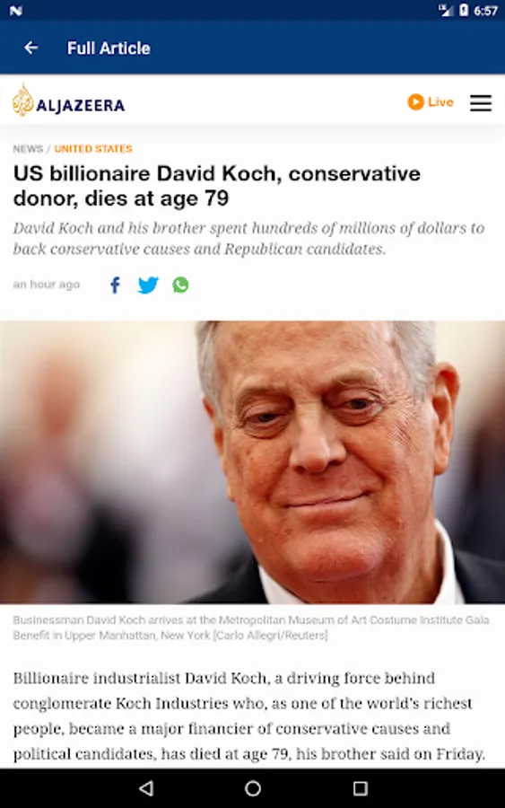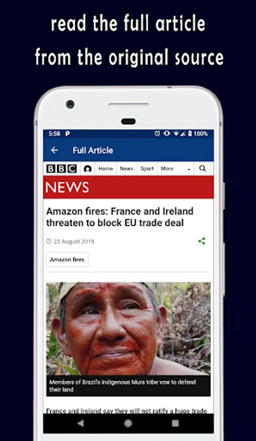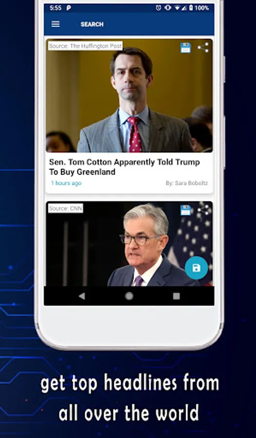 * When you find an interesting article, you'll be able to read the full article from the original source with a single click on the headline.