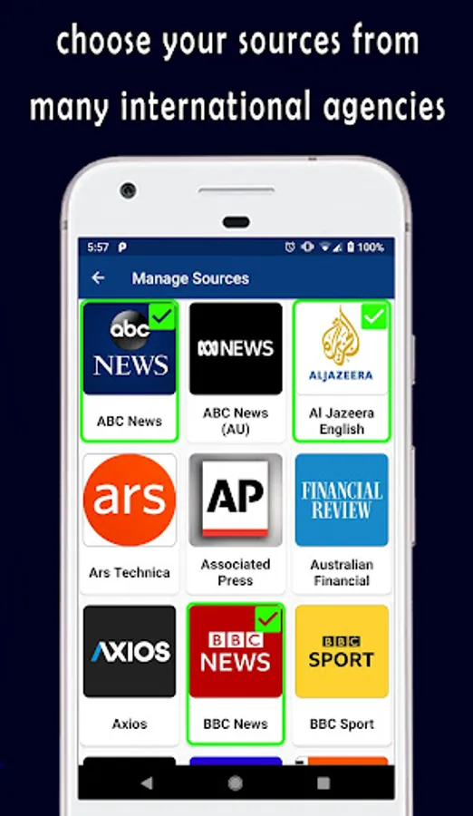 * The app will collect news from top news networks and magazines like BBC, CNN, FOX, Aljazeera, The Gardian, and many others.