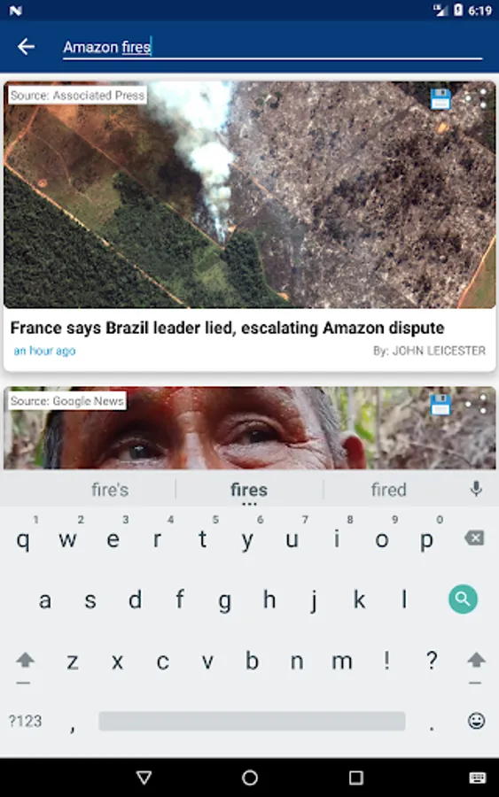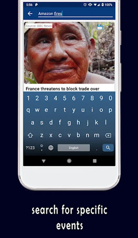 * You can search for specific events and articles by keywords using the search-bar on the top of the main activity.