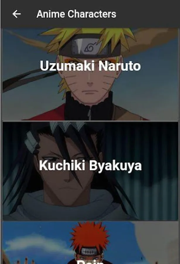 -In Anime Quotes type, user will get a list of each Anime Character.