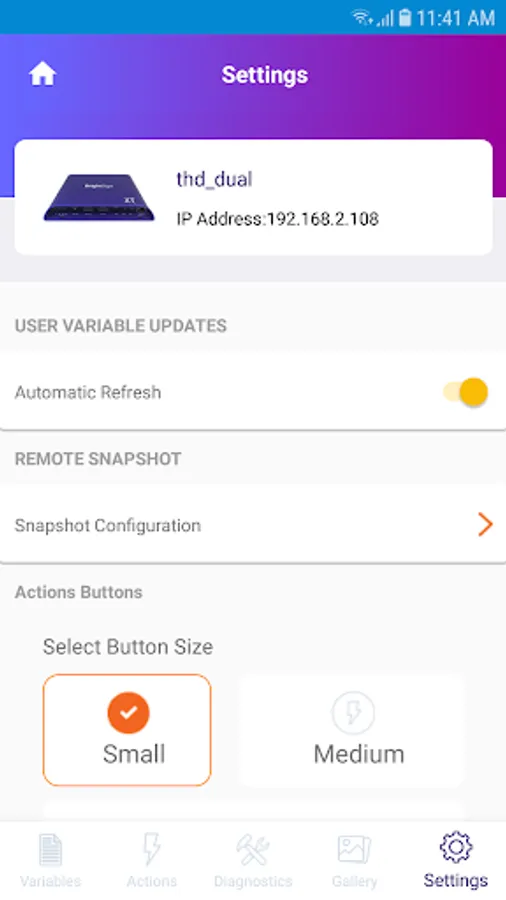 · Remote snapshots of the current presentation can be viewed within the app for presentations created with BrightAuthor 4.1 or later