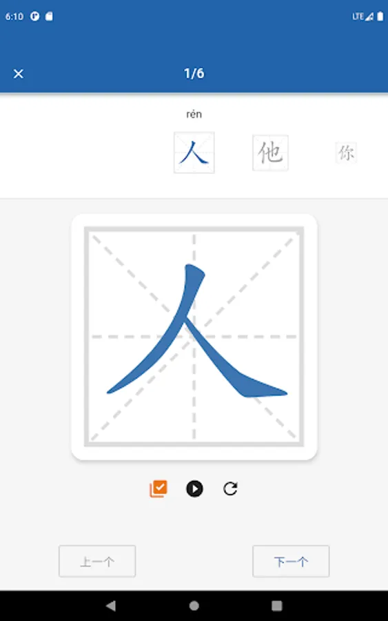View the correct animation of writing Chinese characters and perform handwriting exercises;
