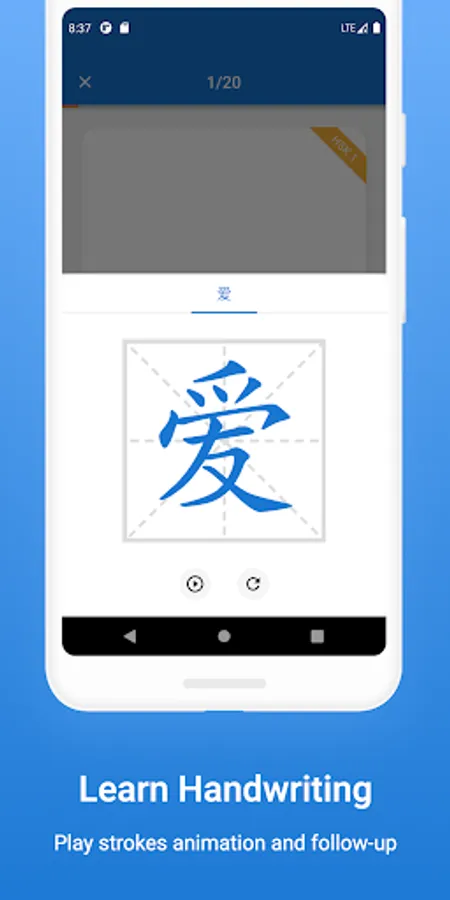 View the strokes and writing animations of Chinese characters, and practice handwriting;