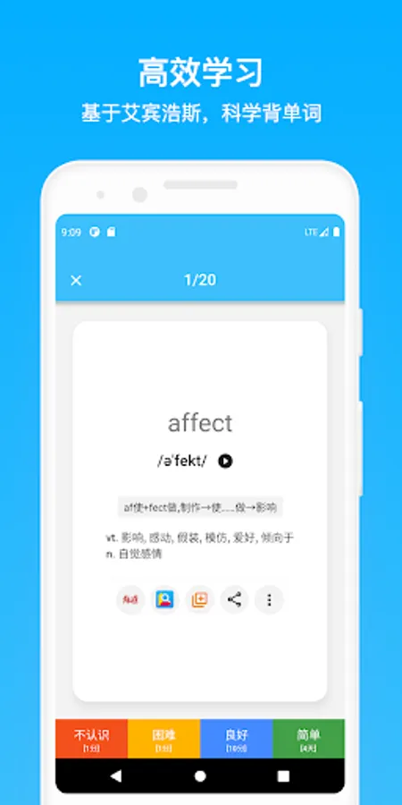 Through the scientific memory algorithm, the review is automatically arranged to help you recite words easily and quickly;