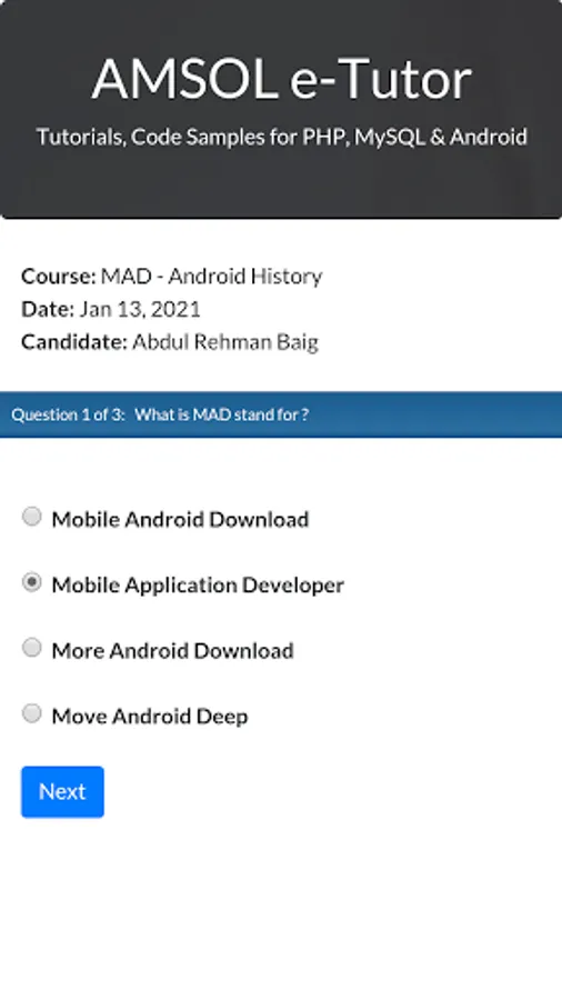 Android Quiz & Learning application provides a platform for Android students to learn and test skills using topic wise quiz as well as custom quiz.