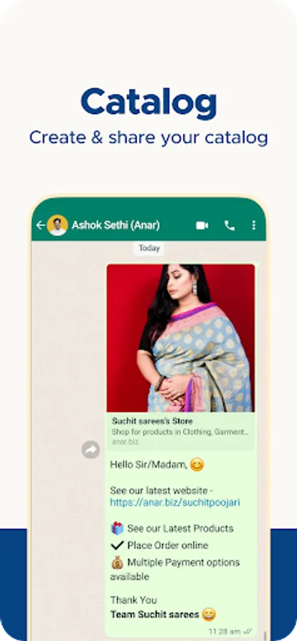 Your latest products are shared with your buyers on their feed on Anar. However, you can also send the link of your product catalog and business website to your buyers via Whatsapp Business with the One-Click share option.