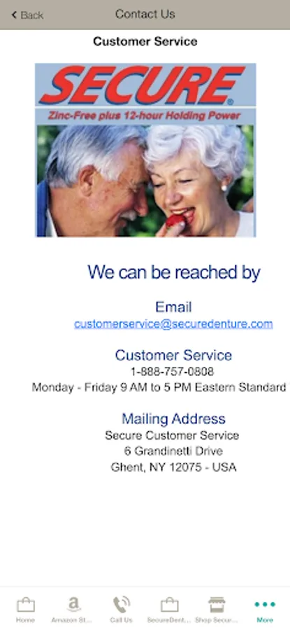 In this app you can buy Secure Denture Adhesive, Secure Adhesive Cushions, Secure Denture Cleanser Anti-Bacterial 32-Tablets, Secure Sensitive Denture Adhesive and great information on zinc free Secure Denture Adhesives.