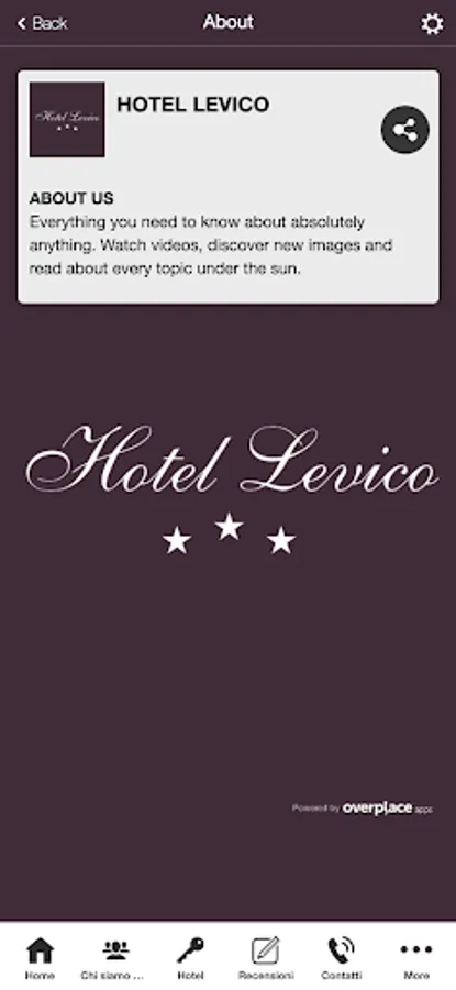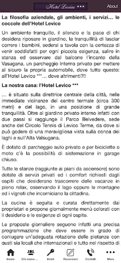 The application Levico contains the description of our business, and the ability to keep up to date on the latest deals, news, events and coupons. Read the reviews and see photos and if you decide to pay us a visit, plan your stay and please contact us with a simple click.