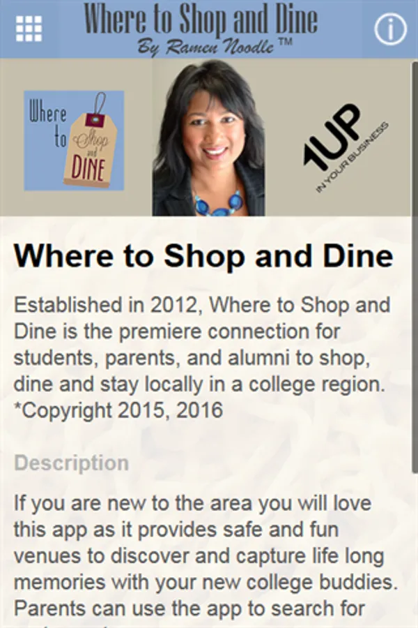 If you are new to the area you will love this app as it provides safe and fun venues to discover and capture life long memories with your new college buddies. Parents can use the app to search for restaurants when visiting their students along with places to stay and shop. Alumni will appreciate this at your finger tips guide from their alma mater and indulge in reminiscence. We are delighted to have you visit the the Capital Region and elated that you're supporting local shops, restaurants and businesses. Until next time my friends. Enjoy & Thank you from the Ramen Noodle ™ group.