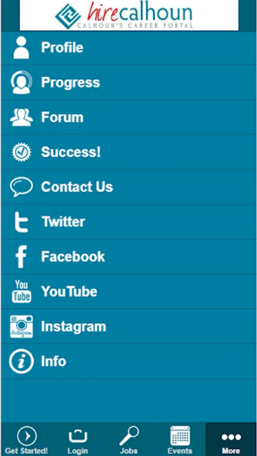 Get Started!, login, Jobs, Call Us, Events, Profile, Progress, Forum, Success!, Contact Us, Location, Twitter, Facebook, LinkedIn