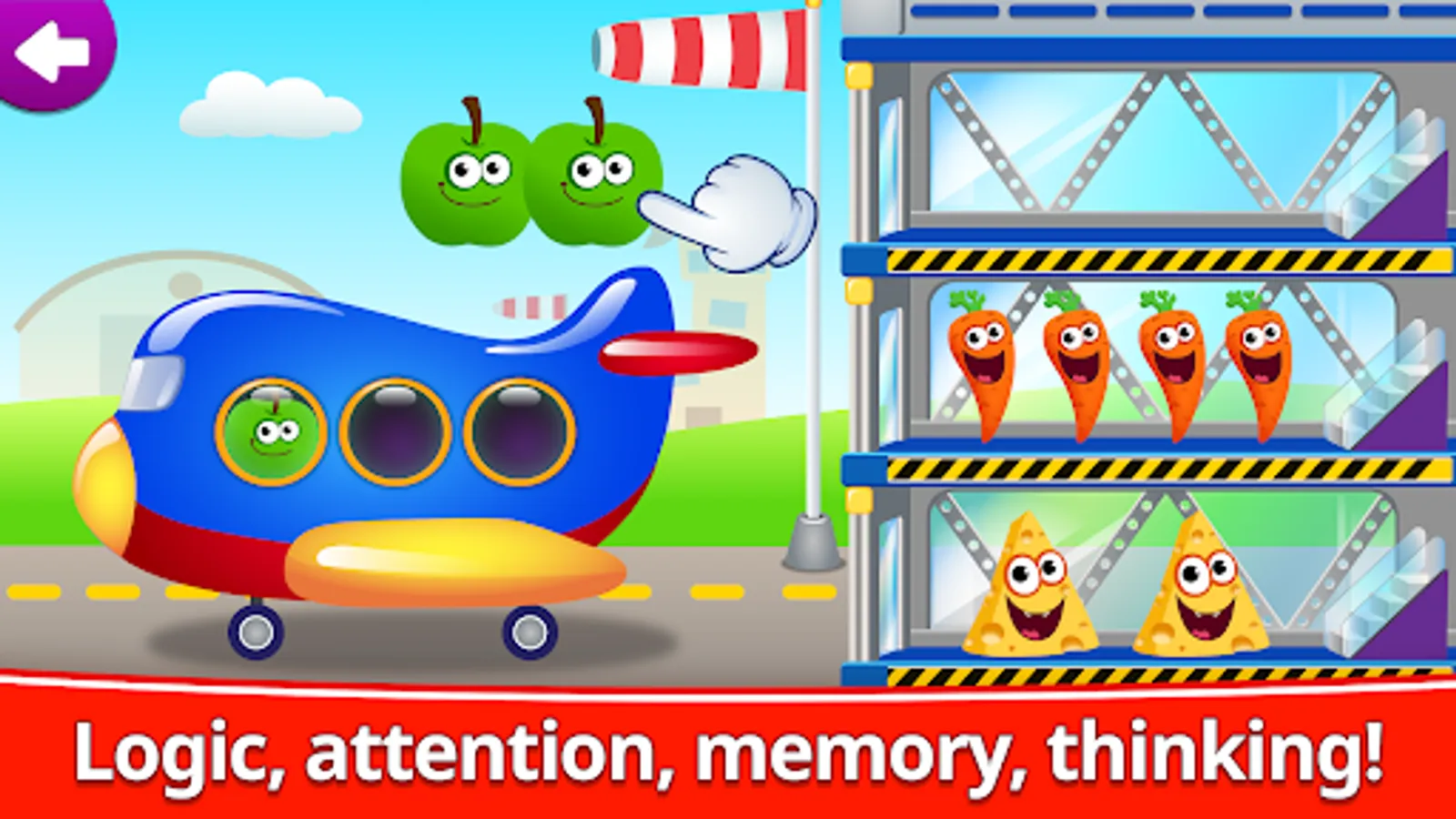By playing and 123 learn with funny fruits and vegetables, your child will train their memory and develop their attention span and logic!