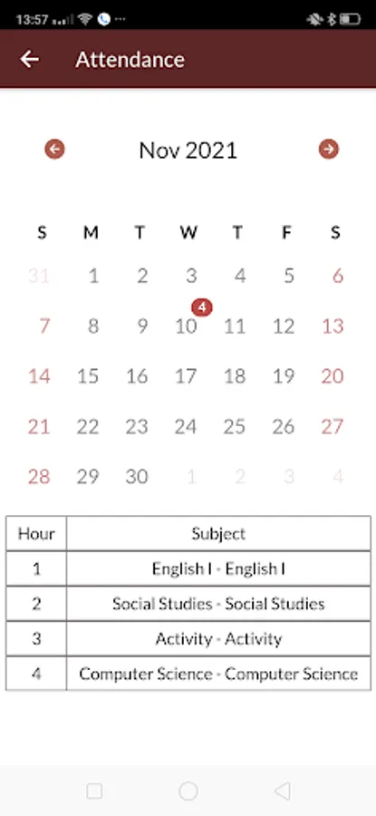 Attendance – student attendance which will be updated by the school and parents can view the attendance of their child any moment.