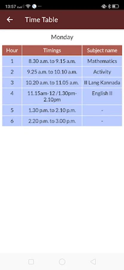 Time Table – To subject are displayed for the ward according to the Days and time set by the institute