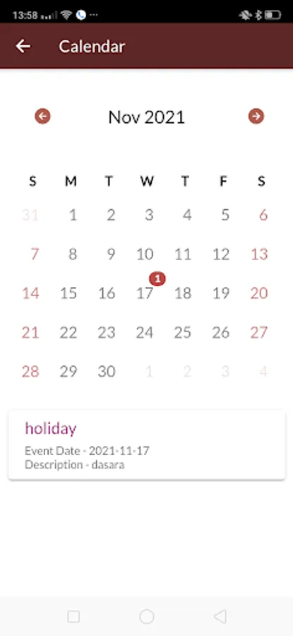 Calendar – give up-to-date information about the events and list of holidays as per the school calendar.