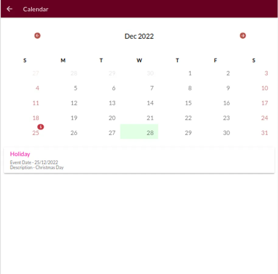Calendar – give up-to-date information about the events and a list of holidays as per the school calendar.